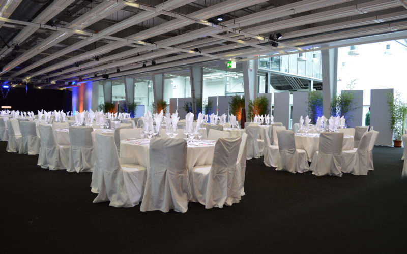 Große Location mit Tischen und Stühlen; Weihnachtsfeier in Offenbach am Main