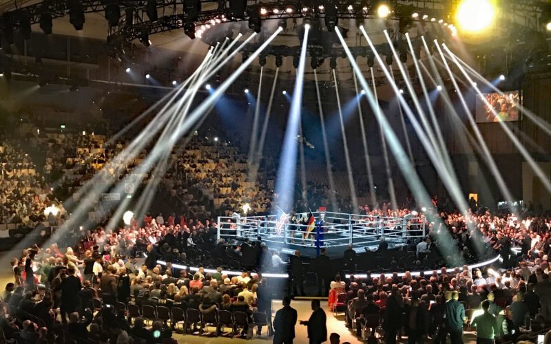 Firmenfeier in Schwerin, Kongresshalle, mit feierlicher Beleuchtung