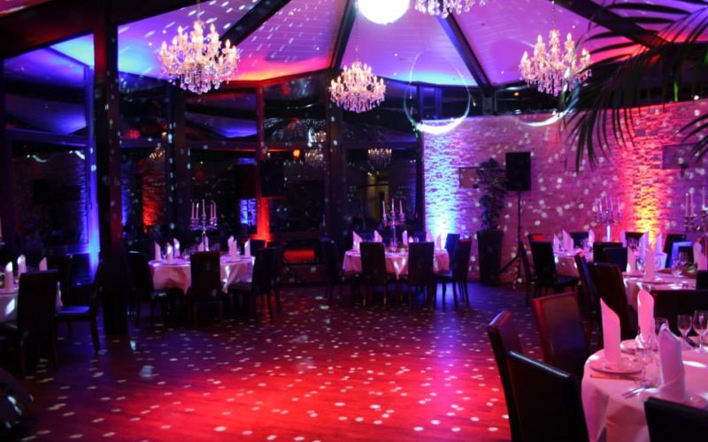 Location mit Tischen und Stühlen sowie einer Tanzfläche