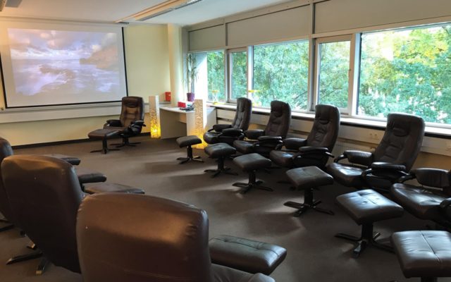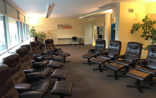 Das Klassenzimmer in Berlin-Treptow mit entspannter und gemütlicher Atmosphäre, ideal für Meetings und Vorträge.