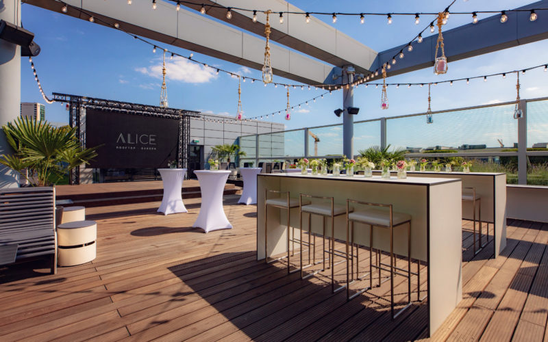 Die Location eignet sich für jeden Anlass und kann exklusiv für Ihre Veranstaltung gebucht werden. Ob Tagung, Kongress, Meeting, Ausstellung und Messe, hybride Veranstaltung, Weihnachtsfeier, Geburtstagsfeier oder Hochzeit; Das ALICE Rooftop & Garden ist Ihre passende Eventlocation. Bei uns finden Sie den perfekten Veranstaltungsraum für bis zu 500 Personen mit Loft-Charakter und angrenzender, atemberaubender Dachterrasse.