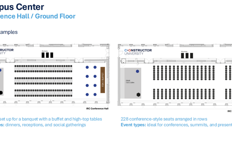 Auf dem Campus der Constructor University wird die enge Verknüpfung zwischen Lernenden und modernen Unternehmen großgeschrieben. Entsprechend wurde bei der innovativen Konzeption der Universität auch für einen kreativen Background gesorgt, der einzigartige Firmenevents modern und professionell umsetzbar macht – direkt vor Ort inmitten bahnbrechender Zukunftsperspektiven.
