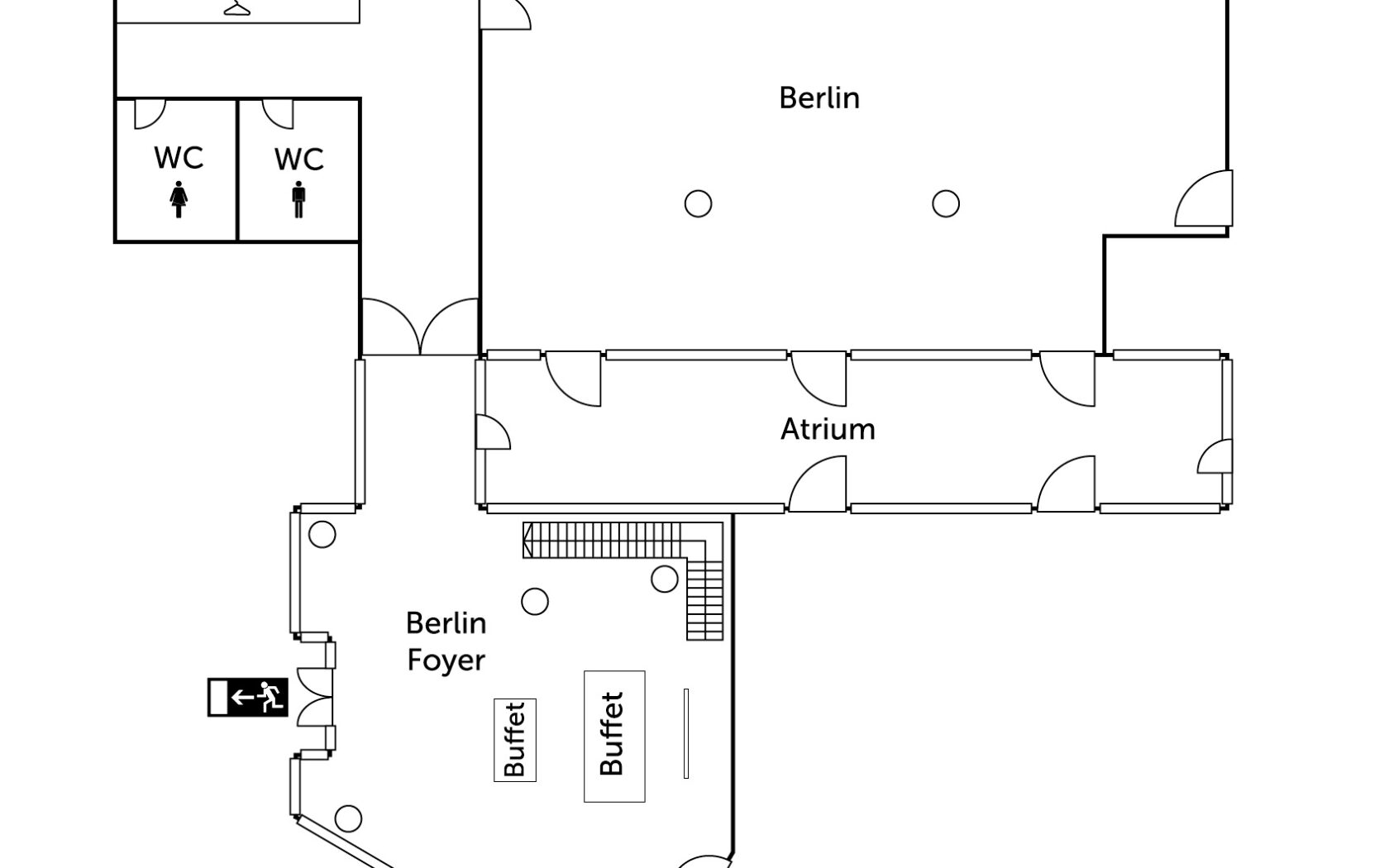 Unser größter Tagungsraum “Berlin” mit seinen 267 m2 bietet Platz für bis zu 260 Personen in Theaterbestuhlung. Ob Konferenz, Workshop oder Roadshow - Raum “Berlin” mit seinem großzügigen Foyer und Atrium bietet 460 m2 exklusive Veranstaltungsfläche für unvergessliche Events.