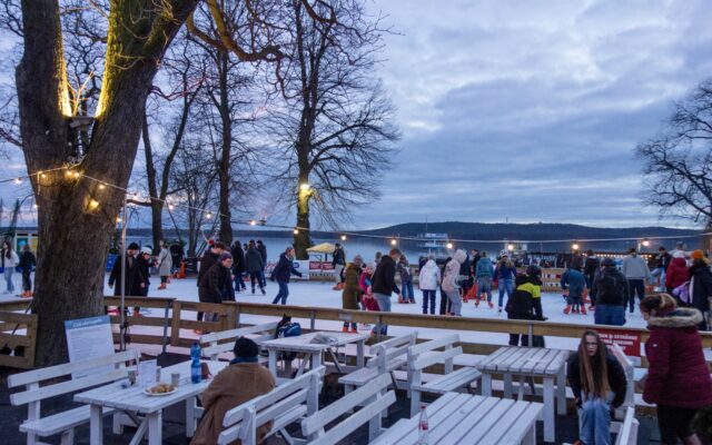 Die großzügige 600 m² Eisfläche auf festem Boden bietet sowohl Anfängern als auch erfahrenen Schlittschuhläufern ein tolles Erlebnis. Doch nicht nur das Eislaufen steht im Mittelpunkt – auch für die Zaungäste gibt es einen Genuss. Heißer Glühwein und knusprige Pommes vom Imbiss laden zum Verweilen ein und sorgen für eine gemütliche Zeit mit einem unvergleichlichen Blick über den Müggelsee.