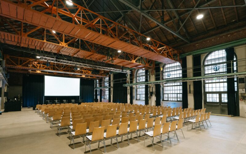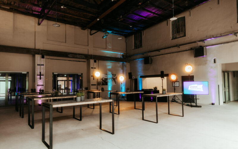 Die historische Industriearchitektur trifft hier auf moderne Ausstattung und urbane Atmosphäre. Die vielseitigen Flächen – darunter imposante Industriehallen, moderne Meetingräume, eine Pitch Area und eine exklusive Dachterrasse mit Panoramablick – schaffen ein inspirierendes Setting für unvergessliche Erlebnisse.