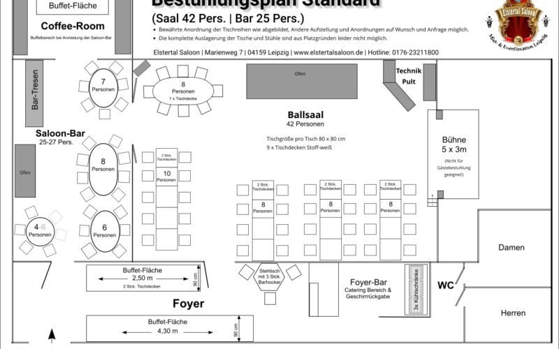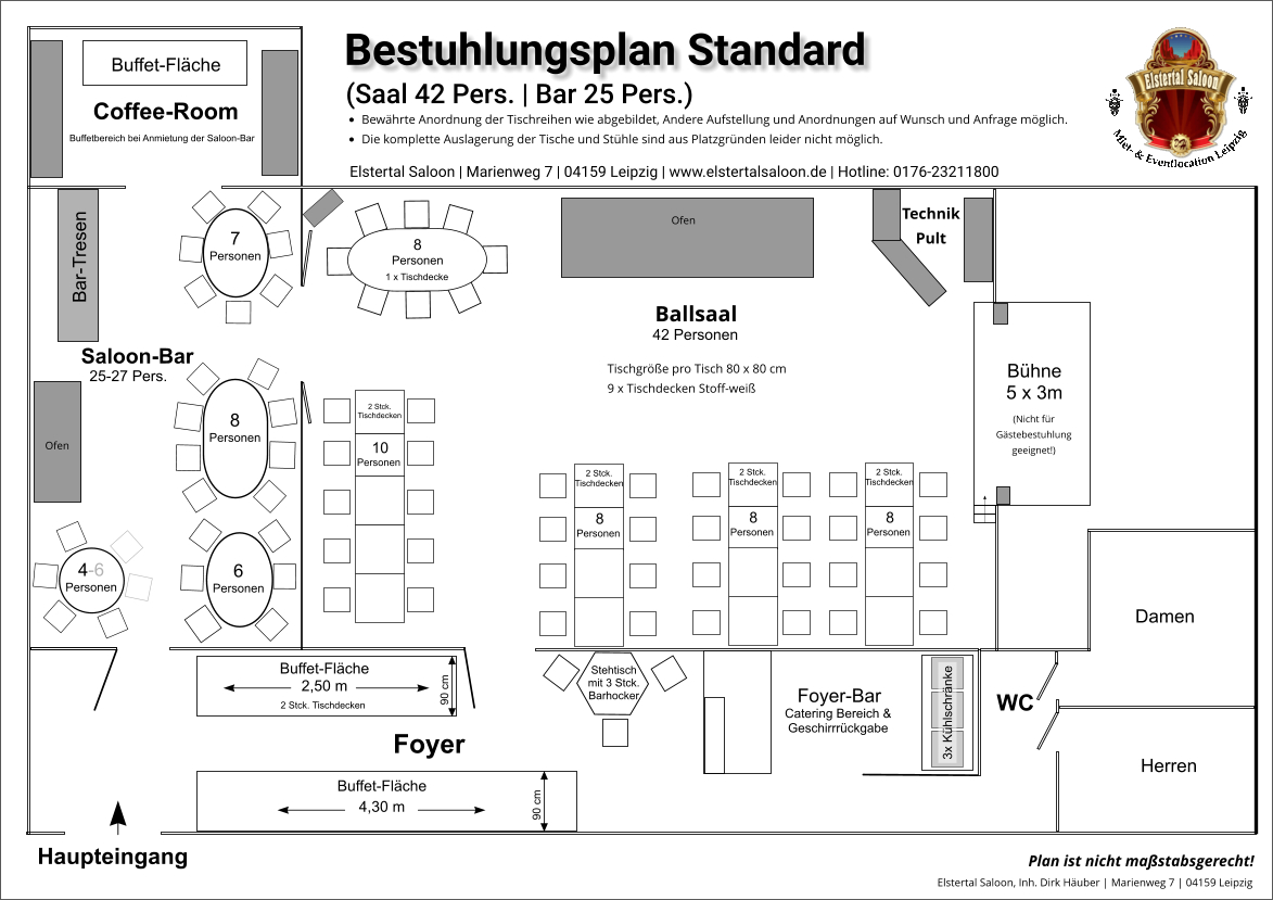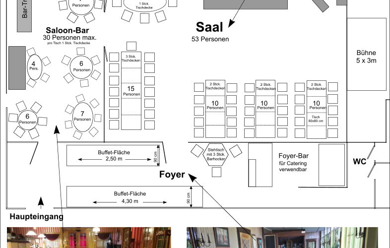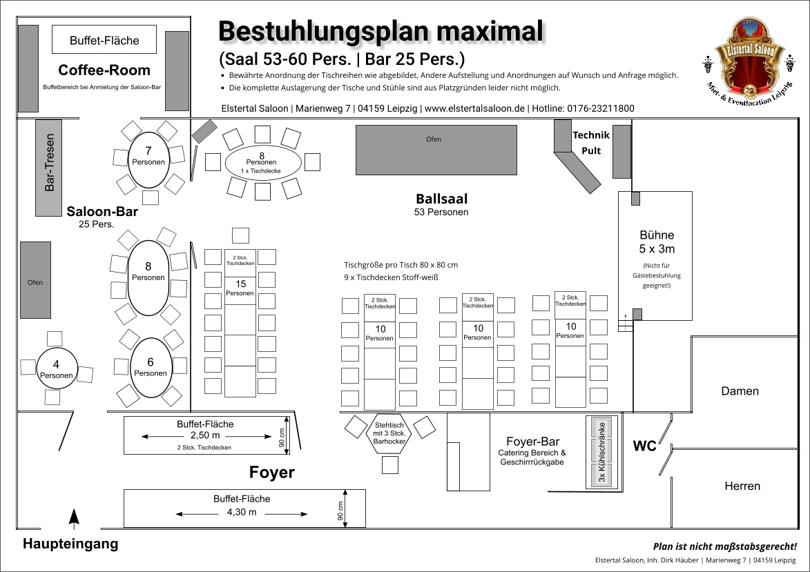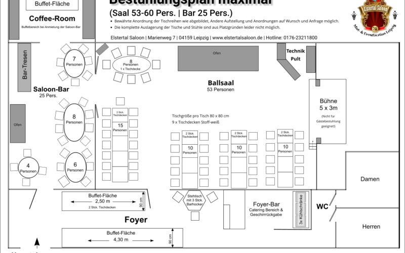 | Ballsaal mit Bühne | 105 | 60 | 53 | ||||