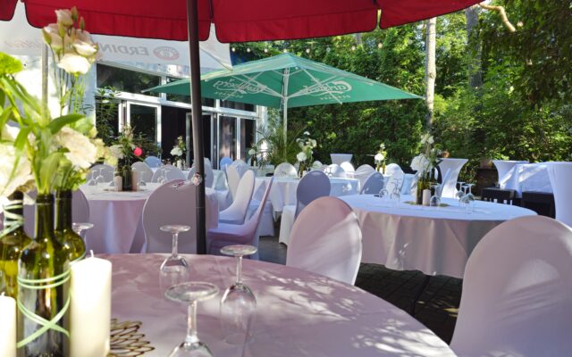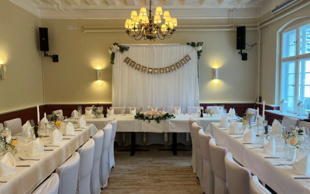 Unsere großzügigen Festräume und ein weitläufiger, waldartiger Außenbereich sorgen dafür, dass Ihr Event mit bis zu 150 Gästen ganz bestimmt zu einem einzigartigen Erlebnis wird. Bei Bedarf können wir unseren zweigeteilten Festsaal etwas verkleinern.