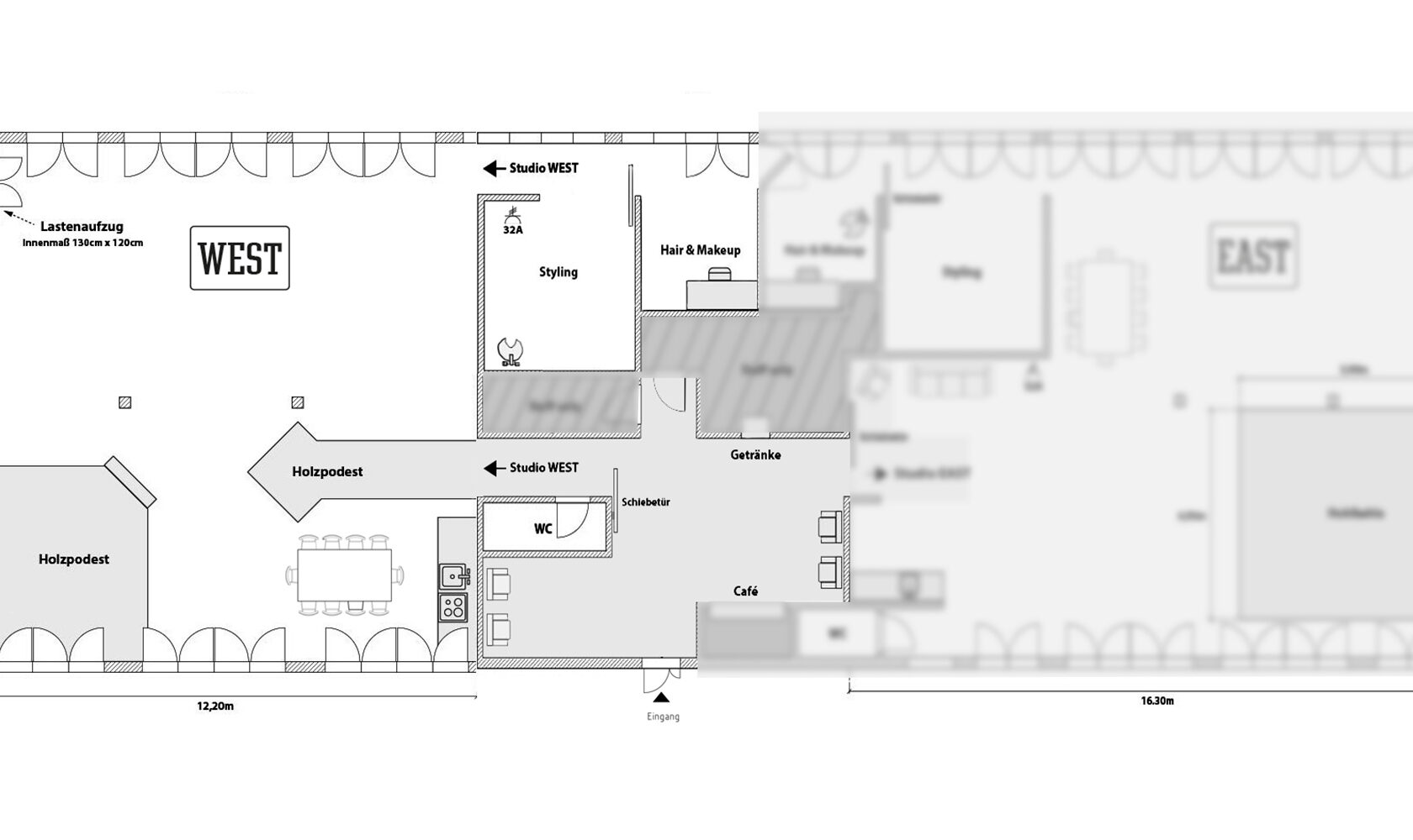 Auf der Suche nach einem anderen tollen Studio? Außer den Studios West und East befinden sich die variabel nutzbaren Flächen Loft 1 oder Loft3, im gleichen historischen Gebäude der ehemaligen Schuhwarenfabrik in der Stahltwiete direkt in Gehdistanz zur S-Bahn Station Ottensen.