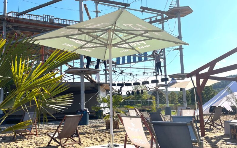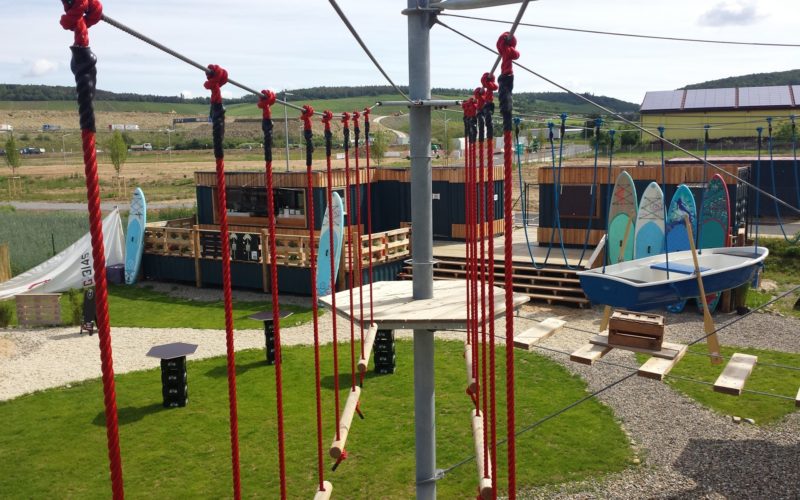 Mehr als nur Klettern: Die Beach-Atmosphäre und der weite Blick ins Maintal garantieren einen maximalen Erholungsfaktor, die originelle Gestaltung ein unbeschwertes Beisammensein und die Outdoor-Aktivitäten das besondere Abenteuer-Erlebnis.