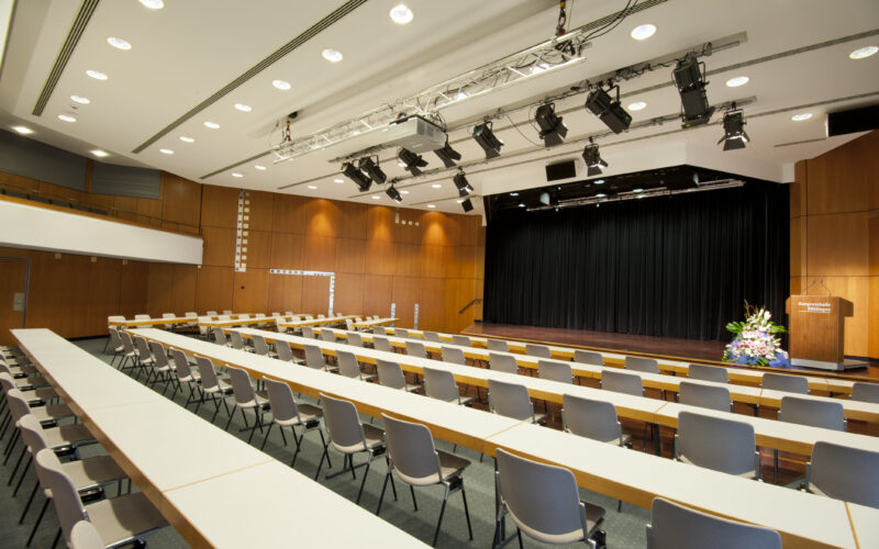 Nach einer umfassenden auf Nachhaltigkeit ausgerichteten Renovierung im Jahr 2019 ist die Kongresshalle Böblingen mit sechs neuen Ladepunkten für Plug-in Hybrid- oder Elektrofahrzeuge mit jeweils 22 kW Ladeleistung ausgestattet. Neu im vollständig renovierten Schwarzwald-Saal ist das Plug & Play Angebot mit der Möglichkeit der technischen Eigenbetreuung der Veranstaltung durch den Kunden. In diesem Saal ist auch eine Eigenbewirtschaftung mittels einer kleinen Küche möglich. Wer sich gerne von unserem Caterer verwöhnen lassen möchte, ist bei Neuberths am See in allerbesten Händen.