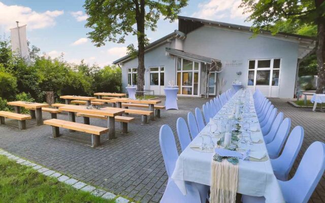 Marienburg thront auf dem Dach von Stuttgart am Südhang des Gablenbergs und bietet einen weiten Blick über das Neckartal. Ein besonderer Ort umgeben von Wiesen, Wäldern und Weinbergen in einem wunderschönen Naturschutzgebiet, das fast vergessen lässt, dass man sich noch im Herzen Stuttgarts befindet. Nutzen Sie dieses leicht zugängliche Versteck für unvergessliche Events und Meetings. Fünf frei kombinierbare Räume mit einer Größe von 11 m2 bis 150 m2 bieten für jede Veranstaltung die passende Idee. Die gut ausgestattete Gourmetküche erweitert Ihre gestalterische Freiheit. Neben einer großen Terrasse und einer überdachten Bühne gibt es auch einen Sportplatz, einen großen Spielplatz und eine Feuerstelle. Es gibt ausreichend Parkplätze vor Ort. Unser großer Saal bietet je nach Anzahl der Sitzplätze Platz von 35 Personen (Rundbestuhlung) bis 130 Personen (Theaterbestuhlung). Der Konferenzraum oder Kreativraum kann von Gruppen bis zu 20 Personen genutzt werden.