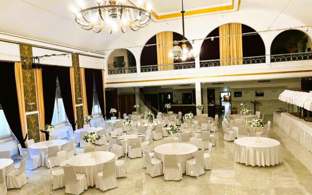 Planen Sie Ihre Hochzeit in einer sorgfältig gestalteten Umgebung und schaffen Sie unvergessliche Momente. Das Veranstaltungszentrum Minenpalast befindet sich in Hattersheim am Main, unweit von Frankfurt. Mit einer Ballsaalfläche von 1.200 m2 ist er in allen Belangen flexibel einsetzbar. Ob Sie 100 oder 1.200 Jahre alt sind, hier entstehen einige der glücklichsten Erinnerungen Ihres Lebens! Alles wird so gemacht, wie Sie es wünschen, denn die freundlichen Mitarbeiter des Foyers stehen Ihnen sicher zur Seite. Im Freiland wird je nach Idee eine personalisierte Kulisse mit der gewünschten Dekoration erstellt. Dank des Bar-Restaurants, das bis zu 60 Personen Platz bietet, ist die körperliche Gesundheit immer ein Anliegen. Genießen Sie hervorragende mediterrane Küche oder entspannen Sie in der stilvollen Bar mittendrin die Nr. 1.