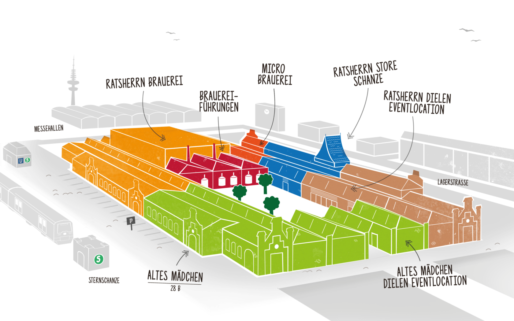 Zwischen dem Fernsehturm, den Messehallen und der S-Bahn Sternschanze, an einem Ort, an dem jeden Tag Menschen aus aller Welt und aus Hamburg zusammenkommen, befindet sich die Event-Location rund um das Braugasthaus Altes Mädchen. Die Veranstaltungsräume werden individuell an den jeweiligen Anlass angepasst – sei es mit opulenter Blumendekoration, besonderer Beleuchtung oder passender Technik.