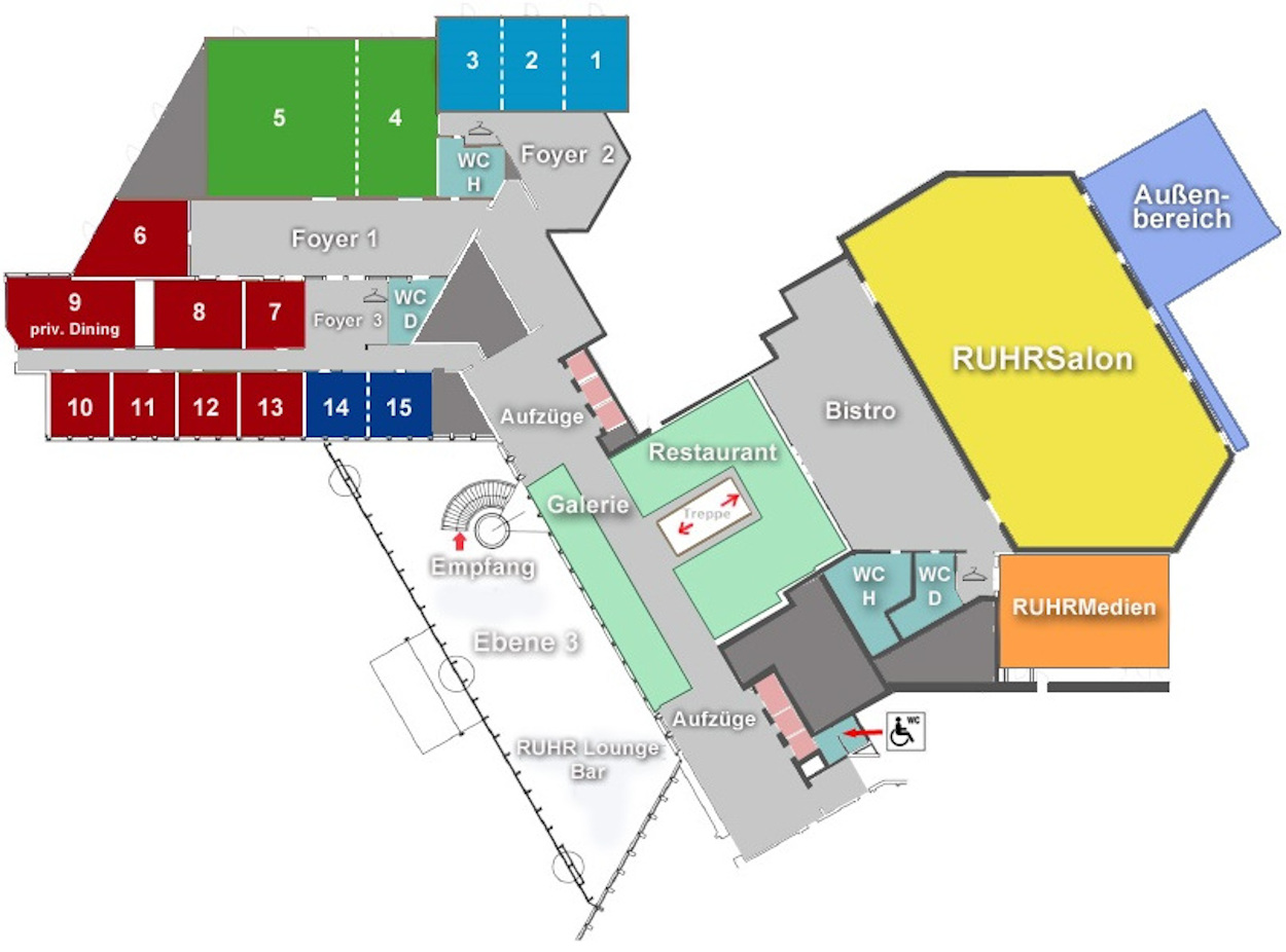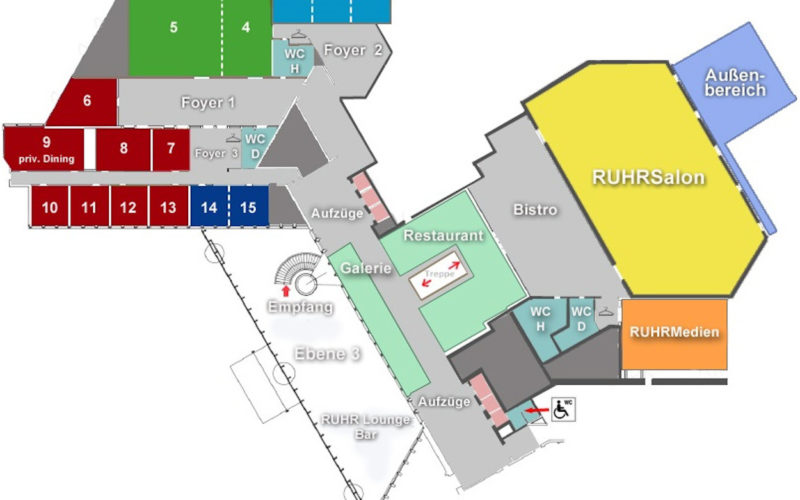 Der Ruhrturm bietet Ihnen auf einer Fläche von 2000 qm vielfältige Inszenierungsmöglichkeiten um Ihrem Anlass den passenden Rahmen zu verleihen. Neben dem größten Eventraum, dem Ruhrsalon mit einer Größe von 750 qm stehen Ihnen noch weitere Tagungs- und Konferenzräume zur Verfügung, die mit modernster Veranstaltungstechnik ausgestattet sind. Für das leibliche Wohl von Ihnen und Ihren Gästen sorgt das hauseigene Restaurant, dass Sie mit moderner, deutscher Küche verwöhnt. Im angeschlossenen Hotel Webers können Sie sich nach getaner Arbeit oder einer ausgelassenen Party in einem der 129 stilvollen und komfortablen Zimmer erholen und ausruhen.