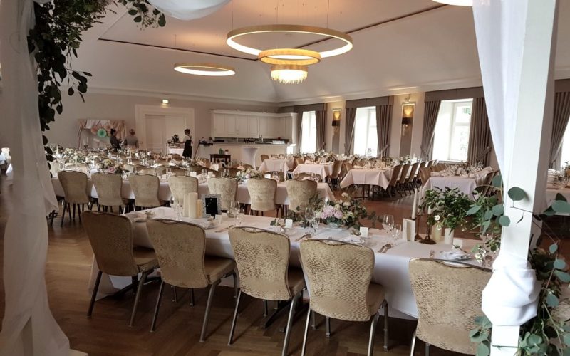 Feiern Sie Ihre Hochzeit oder Ihr Firmenjubiläum in dieser Toplocation. Verschiedene Säle und Räumlichkeiten verteilen sich auf drei Ebenen und bieten für bis zu 300 Personen Platz. Dieses Wasserschloss bietet Ihnen und Ihren Gästen ein Ambiente für jeden Geschmack. Für bis zu 152 Personen können Sie im großen Saal Ihre Hochzeitsfeier umsetzen. Für Familienfeiern stehen Ihnen der Kleine oder der Terrassensaal zur Verfügung. Der Gewölbekeller kann für Ihre Party genutzt werden. Das Schloss Ovelgönne liegt in unmittelbare Nähe zur Kurstadt Bad Oeynhausen mit Restaurants, Hotel, Kurparks und touristischen Attraktionen. Die Location eignet sich für Ihre Feierlichkeiten und ist ein idealer Veranstaltungsort für Ihre Tagung, Firmenfeier oder Messe.