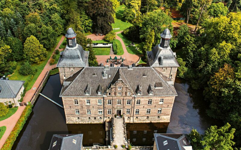 Das prächtige Schloss des Freiherrn von Fürstenberg ist ein elegantes und charmantes Refugium sowohl für private als auch geschäftliche Gäste, mit 36 stilvollen und komfortablen Zimmern und Suiten und verleiht Ihrem Event ein charmantes und edles Flair. Das Schlosshotel Hugenpoet bietet Ihnen einen eleganten und exklusiven Rahmen für Ihre Veranstaltung. Die acht individuell gestalteten Säle und Salons bieten Ihnen vielfältige Inszenierungsmöglichkeiten für Ihre Veranstaltung. Das Hotel besticht nicht nur durch sein wunderschönes Interior, sondern auch die fantastische Lage in einer parkähnlichen Anlage, umgeben von Bäumen und idyllischer Natur. Bei gutem Wetter bietet Ihnen das Schloss hier außerdem die Möglichkeit auf der großzügigen Terrasse zu feiern und anschließend in eine der prächtigen Festsäle ausgelassen in fürstlichem Ambiente weiter zu feiern.