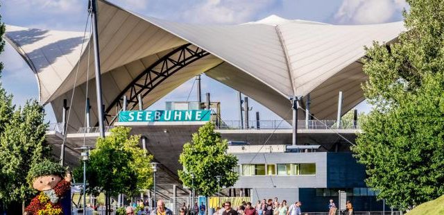 Das Amphitheater ist von Wasser umgeben und bietet eine einzigartige und atemberaubende Kulisse für Veranstaltungen. Die vollständige Überdachung sorgt auch im Freien für beste Akustik und schützt natürlich vor Regen und Sonneneinstrahlung. Die Saison im Elbauenpark dauert von April bis Oktober, während dieser Zeit gibt es auch Events auf der Seebühne. Die Seebühne befindet sich im Zentrum des Parks, neben der großen Angerwiese. Sie bietet insgesamt 1.546 Sitzplätze auf fünf Tribünen, die wie Blütenblätter angeordnet sind. Dazu gehören auch Plätze für Rollstuhlfahrer. Neben der einzigartigen Landschaft ist die Bühne auch mit moderner Technik ausgestattet, die für verschiedene Veranstaltung bestens geeignet ist. Die Seebühne bietet eine besondere Umgebung für Konzerte, Galas und Vorträge. Auch private und gewerbliche Veranstaltungen wie Jugendweihen oder Jubiläumsfeiern können hier durchgeführt werden.