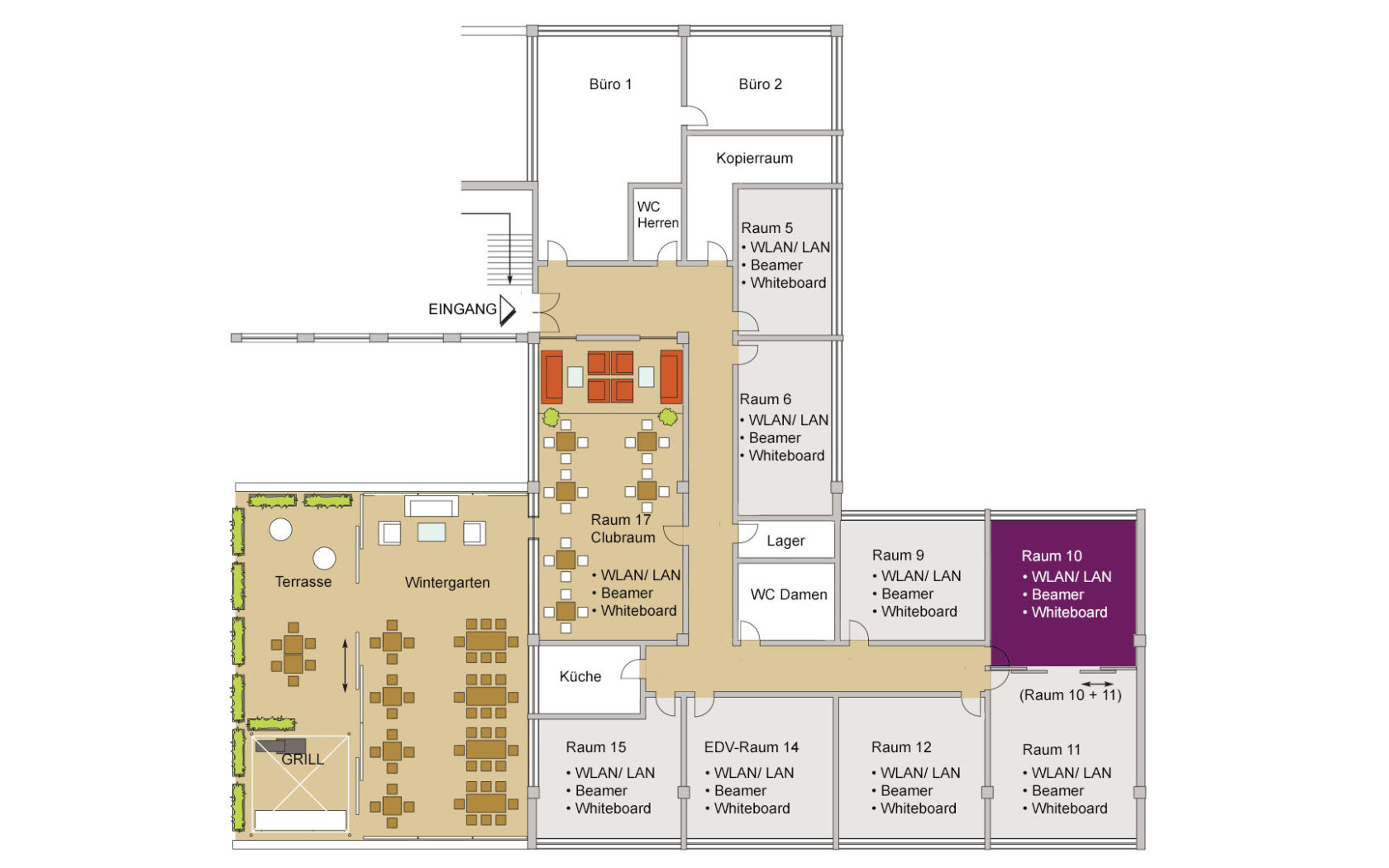 | Clubraum mit Terrasse und Wintergarten | 160 | 86 | 32 | 36 |