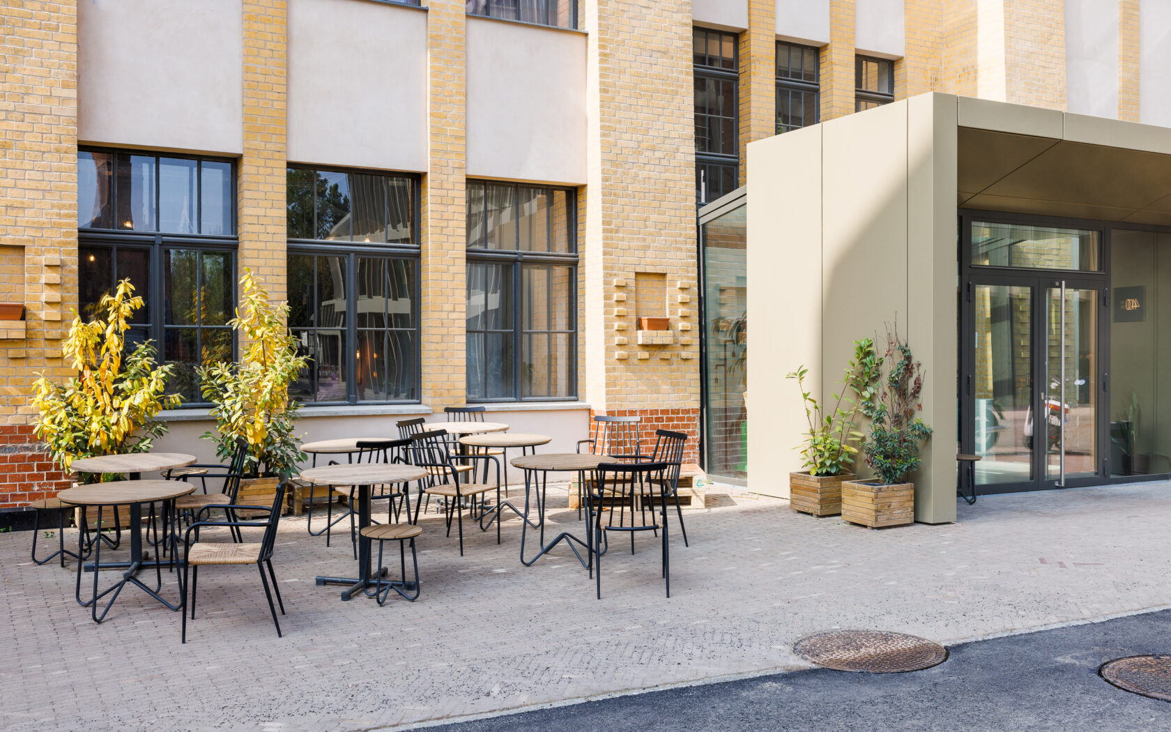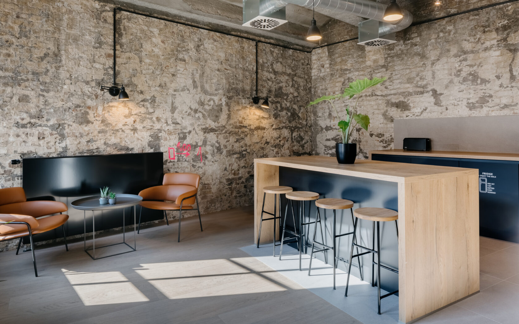 Angrenzend an den Raum können die Gäste das Eis Cafe und die Mitgliederlounge im Techspace Eiswerk genießen, wo Kaffee, Softdrinks und Snacks serviert werden.