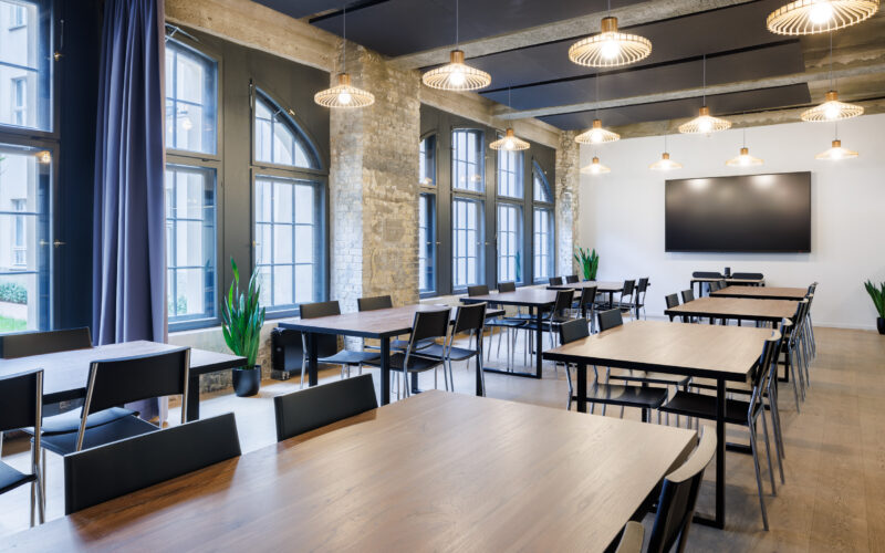 Die Vault ist ein 51-60 Quadratmeter großer privater Mehrzweckraum in unserer Techspace Eiswerk-Location. Der Raum ist so gestaltet, dass er sich leicht zwischen verschiedenen Layouts für verschiedene Veranstaltungen anpassen lässt. Die Layouts umfassen Theaterbestuhlung, Konferenz, Klassenzimmer und Workshop-Stil. Ein Raum, der sich perfekt für Team-Events in privatem Rahmen eignet.