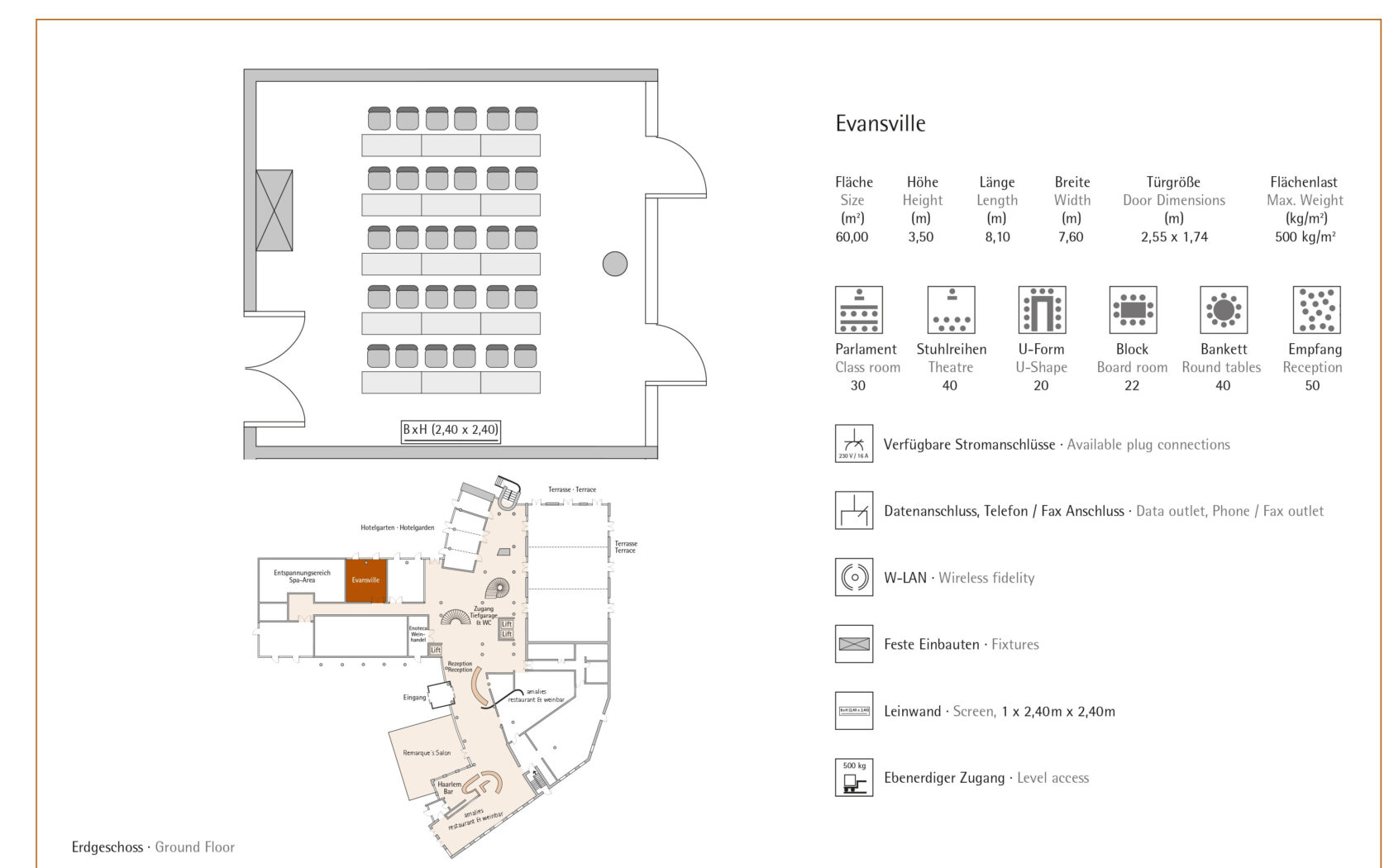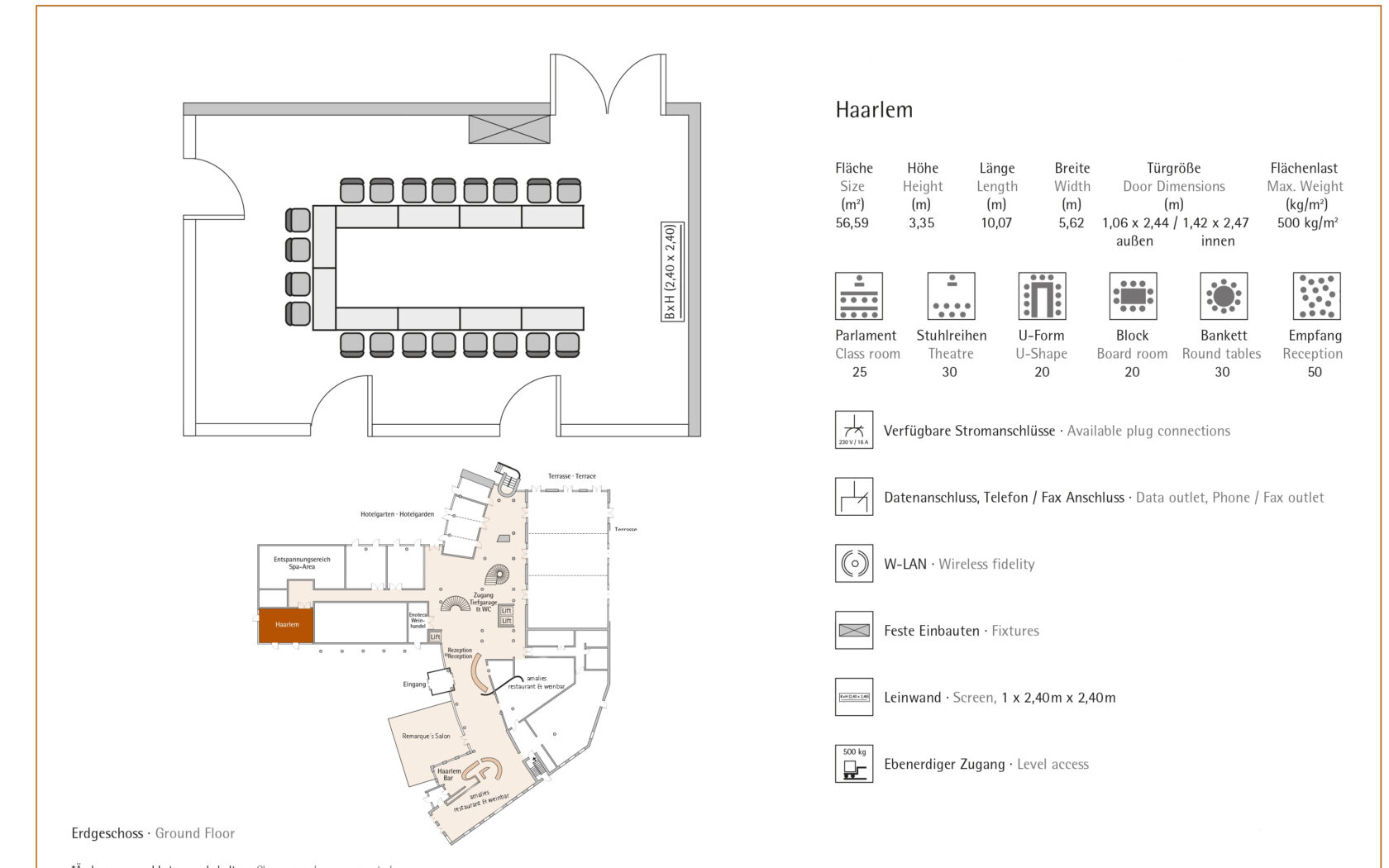 9 Event- und Konferenzräume für unzählige kreative Möglichkeiten: Ihre Gruppenarbeiten finden in zentraler Lage im Erdgeschoß statt – und das bei höchster Konzentration. Die hohen Fenster durchfluten die Räume mit Tageslicht. Durch den direkten Zugang ins Grüne finden die Pausen an der frischen Luft statt. So tanken Sie rasch Energie für die nächste Präsentation.