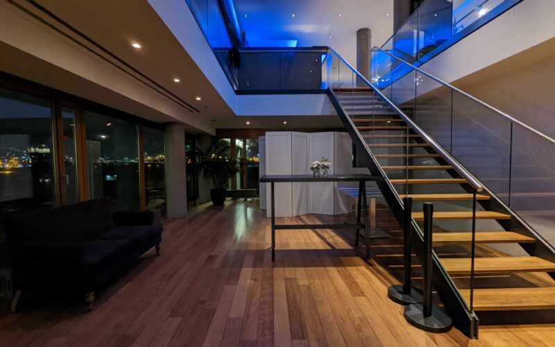 Die faszinierenden Veranstaltungsorte des Ottensener Ufers: Konferenzen, limitierte Präsentationen, Konferenzen, Ausstellungen, Gala, Weihnachtsfeiern, Hochzeitsempfänge, Sommerfeste, Get-Together-Party, etc.-View 11 ist der perfekte Ort für Ihre Gewohnheiten Design-Events.. Erleben Sie die sonnige Hamburger Sonne hautnah durch die großen Fenster und die große Terrasse mit Panoramablick auf die Elbe. Darüber hinaus bietet die Location hochmoderne Tagungseinrichtungen, hervorragende Licht- und Tontechnik sowie eine gut ausgestattete Bar im unteren Bereich. Die 11-Personen-Ansicht ist ab 20 Personen buchbar und steht das ganze Jahr über für besondere Events in einer der schönsten Städte der Welt zur Verfügung. Zentral gelegen, mit guter Verkehrsanbindung und ausreichend Parkplätzen, reisen Sie bequem mit öffentlichen Verkehrsmitteln oder mit dem Auto an.