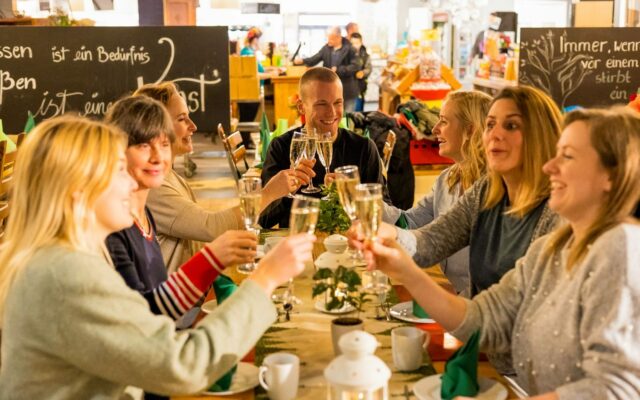 Der Raum Waldblick besticht durch seine helle und edle Atmosphäre, geprägt von natürlichen Holzmaterialien. Mit einer exklusiven Terrasse bietet er den perfekten Ort für Sommerfeste oder gemütliche Zusammenkünfte im Winter am Feuerkorb. Eine maximale Kapazität von 50 Personen macht ihn ideal für verschiedenste Events.