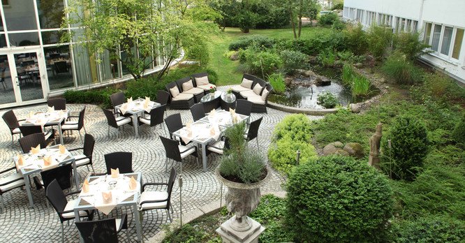 Das Hotel bietet eine ideale Kulisse für Hochzeiten im Hotelgarten, im Pavillon oder im beeindruckenden Atrium. Das erfahrene Team sorgt für eine perfekte Organisation, während das Restaurant ""Ambiente"" ein kulinarisches Angebot nach persönlichen Vorstellungen gestaltet.