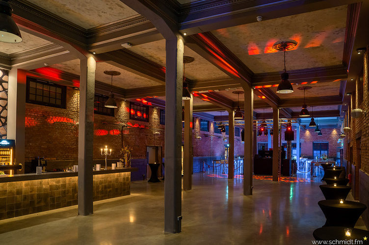 Industrielle Location mit Metalpfeiler und einer Bar; Messehalle in Dresden