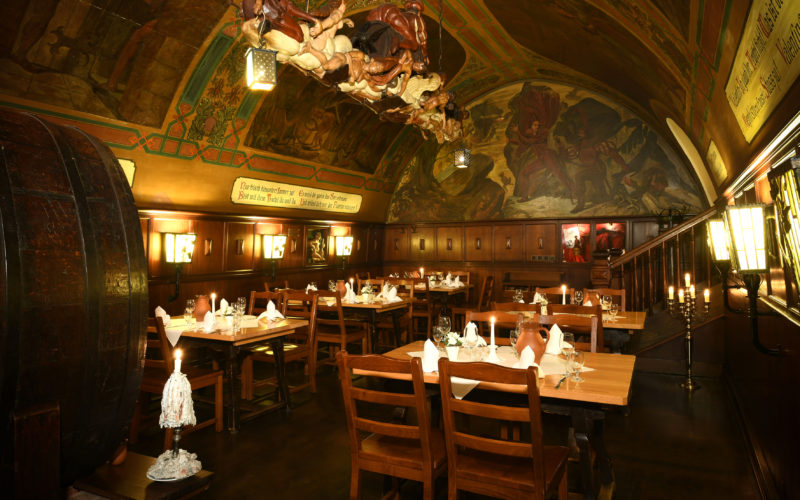 Wunderschöne historische Location mit Tischen und Stühlen; Silvesterparty in Leipzig