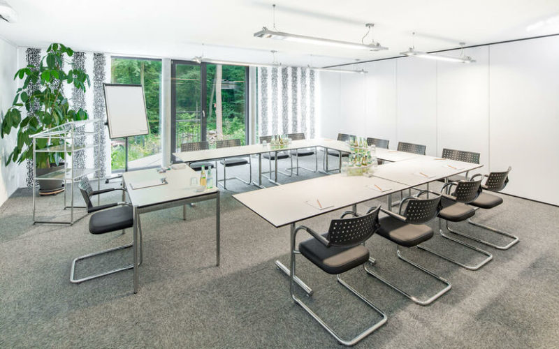 Heller Raum mit Tischen und Stühlen; Tagungsraum und Konferenzraum in Bonn
